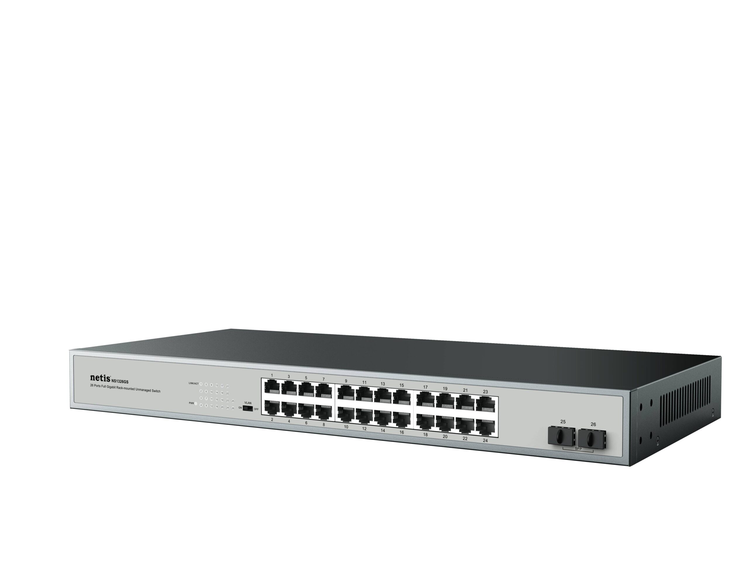 Switch NETIS modelo ST3126GS – 26 Puertos Gigabit Ethernet Switch + 2 Puertos SFP Gigabit, Montable en rack, No administrable